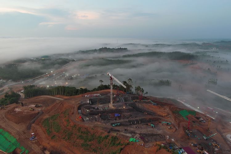 Pemandangan IKN Diselimuti Kabut Pagi dan Malam